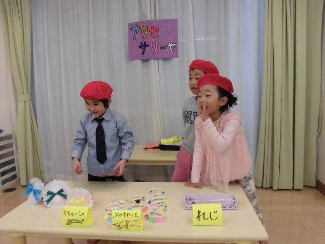 ひまわり組さんは、アクセサリー屋さんと、お花屋さん。